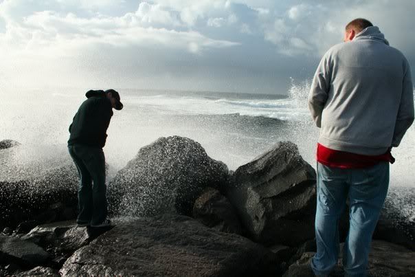 It was pretty long...at least a km, probably more. Waves were crashing up on the jetty a little bit, but nothing insane. Jim and I walked pretty far out along it and drank a beer, while artsy bitch took pictures of birds and waves n shit. The view was pretty cool...I was very impressed.