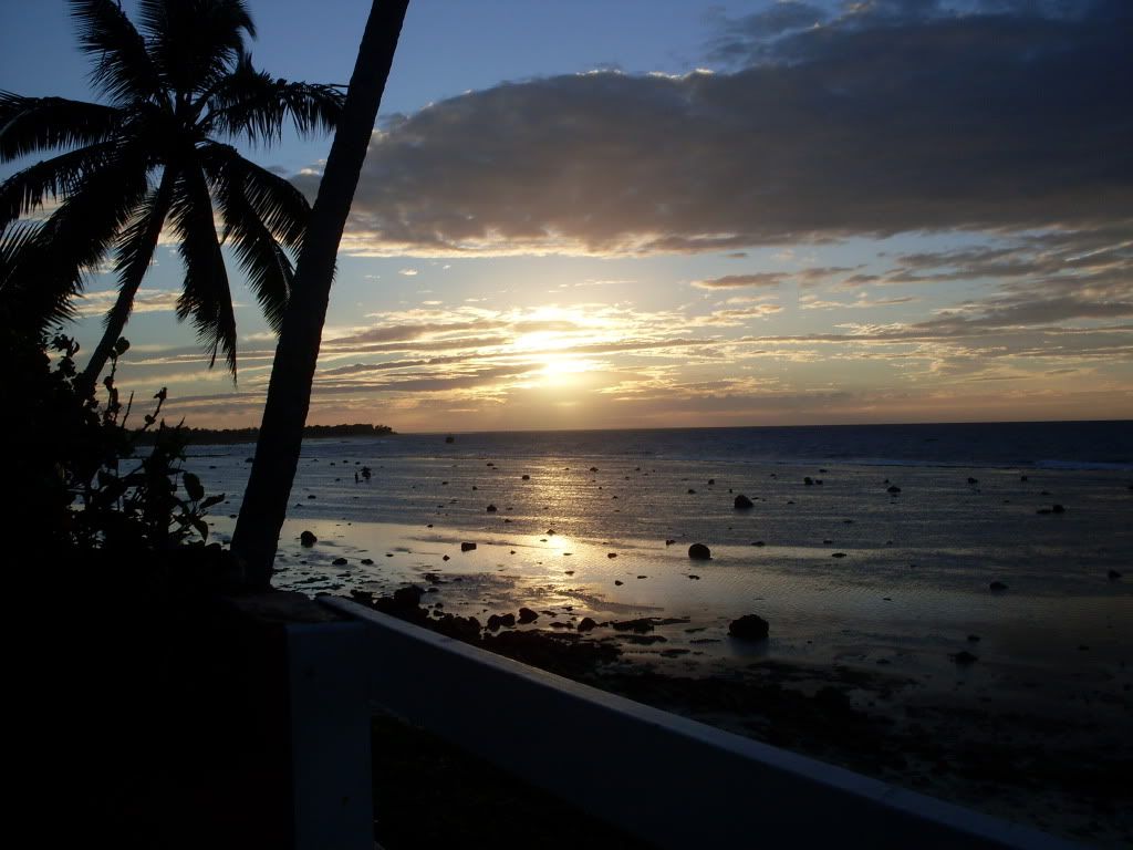 16 rooms, and it was just me there. I went in off-season, and got there on a monday. That adds up to just Tim at the hotel. And that's how Nooroa knew my name - I was his only customer, so it was pretty easy to remember. It was extremely odd at first, but I got used to it quickly. They have a huge veranda outside of the bar that overlooks the ocean, so I grabbed a couple of beers and chilled out there for a bit. The sun was up by then, and the view was pretty damn good. Here, check it yourself (there are many more pics on my facebook page):
